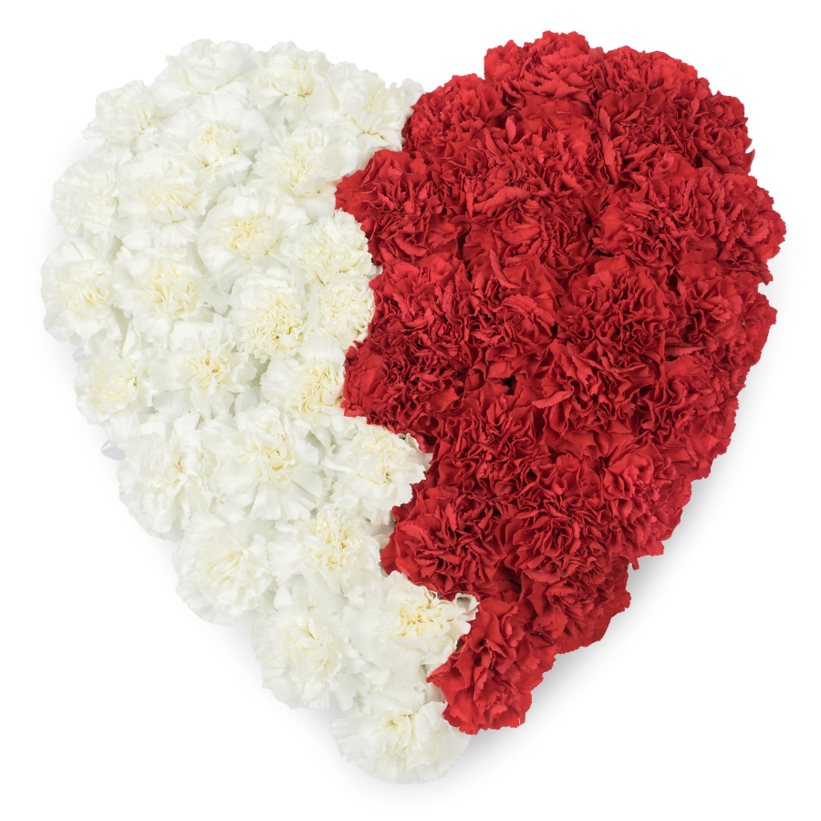 Introducing our elegant heart-shaped white and red carnations bouquet, a perfect fusion of beauty and sentiment. This exquisite arrangement features white and red carnations, each chosen for their freshness and high quality. The heart design symbolizes love and appreciation, making it an ideal gift for any heartfelt occasion.